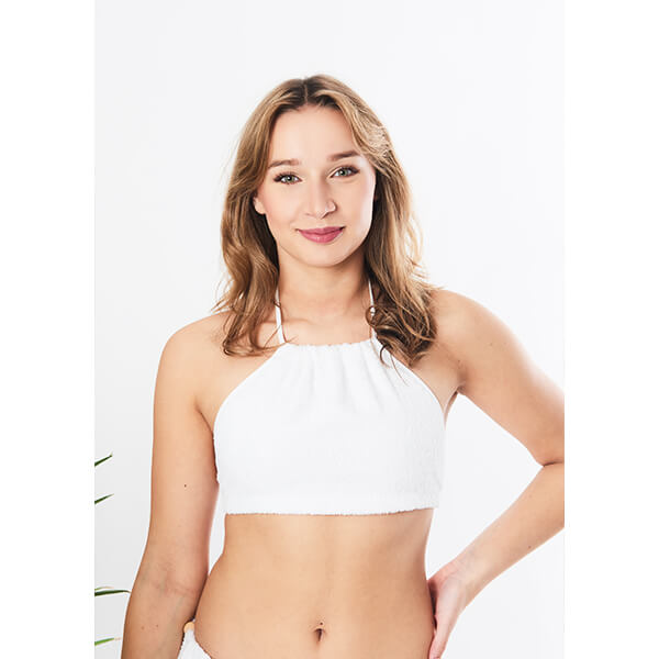 Biustonosz z bawełny frotte zapewnia wyjątkowy komfort, swobodę ruchów i doskonałe wchłanianie wilgoci, idealnie sprawdzając się podczas relaksu w saunie.