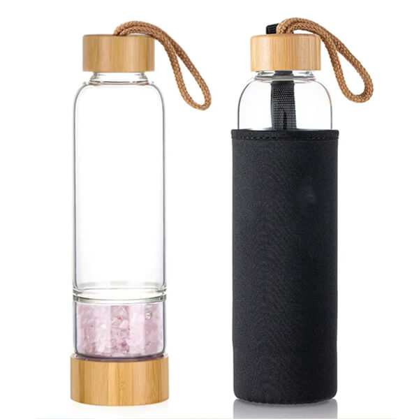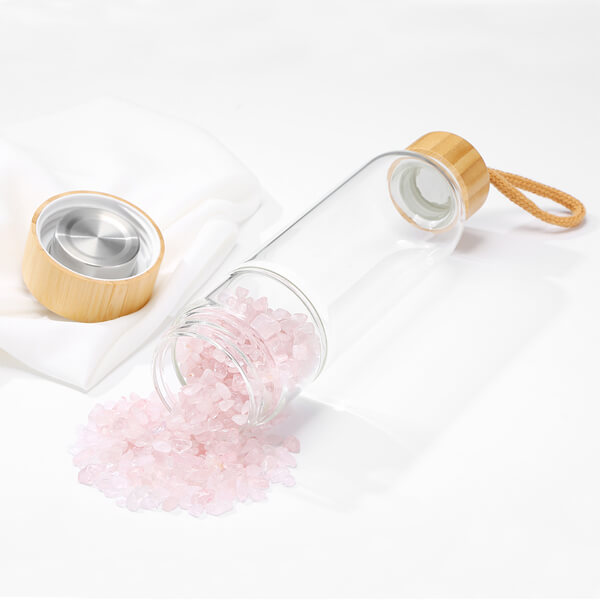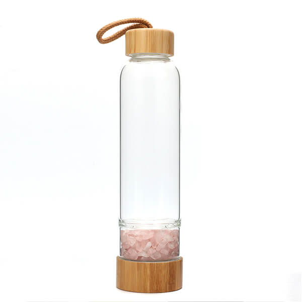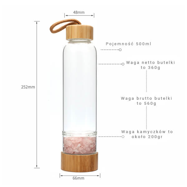 Butelka szklana z kamieniami kwarcu różowego YEYE