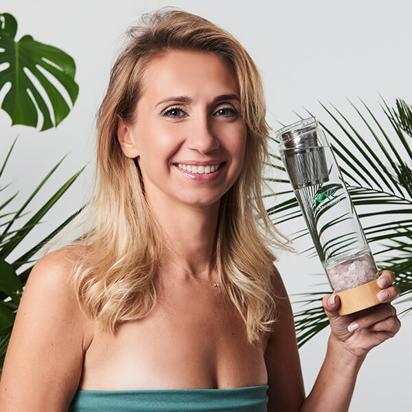 - Zamknij butelkę za pomocą drewnianego wieczka i korzystaj z niej podczas dnia. Ciesz się aromatem i smakiem napoju wzbogaconego o naturalne właściwości kamieni kwarcu.
