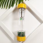 Butelka szklana z kamieniami zielonego jadeitu z sitkiem