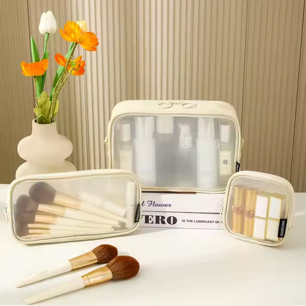 • Trzy rozmiary w jednym zestawie – umożliwiają wygodne sortowanie kosmetyków i akcesoriów.