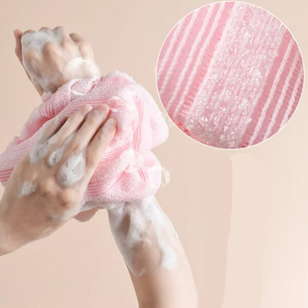 Dzięki długości aż 90 cm z łatwością oczyścisz plecy, uda i pośladki, a obfita piana sprawi, że zużyjesz mniej kosmetyków. To idealny wybór dla każdego, kto szuka higienicznego, wielokrotnego akcesorium, które naprawdę działa.