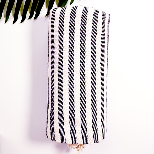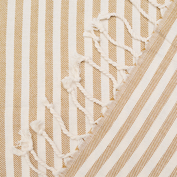 Ta wyjątkowa tkanina o długich włóknach jest trwała, miękka i przyjazna dla skóry. Tradycyjny splot nadaje ręcznikowi lekkość, a jednocześnie zapewnia doskonałą chłonność i szybkie schnięcie. Ozdobne paski i frędzle podkreślają jego charakter hammam – prosty, naturalny, a zarazem elegancki.