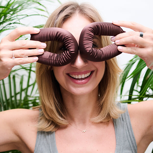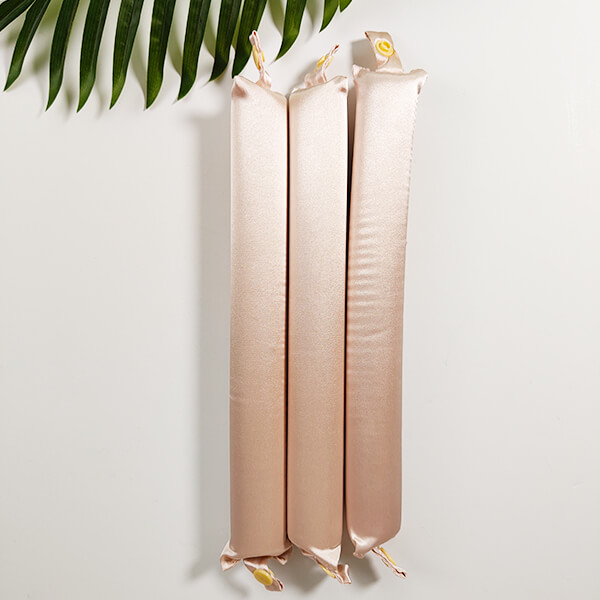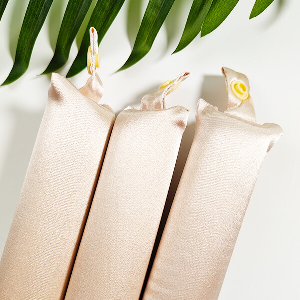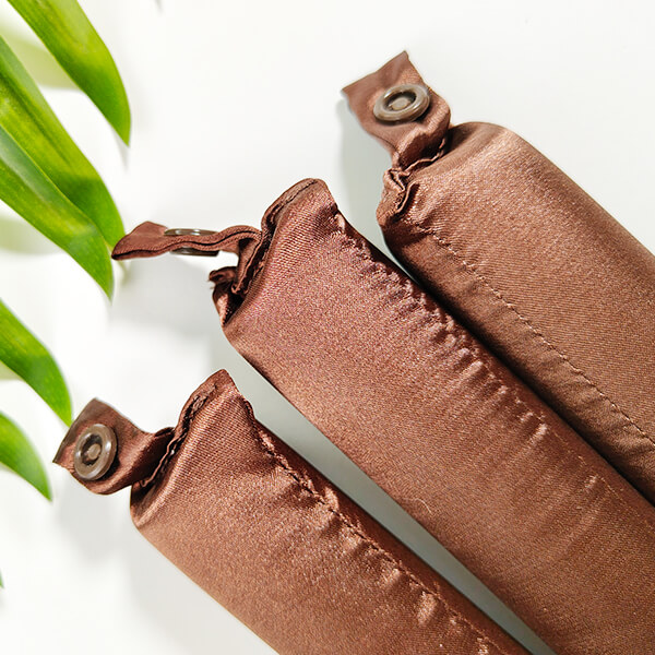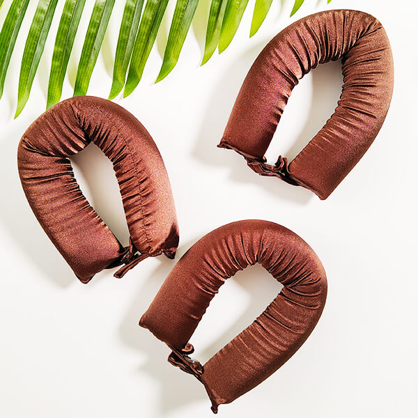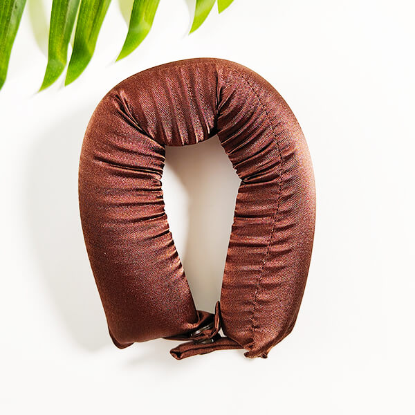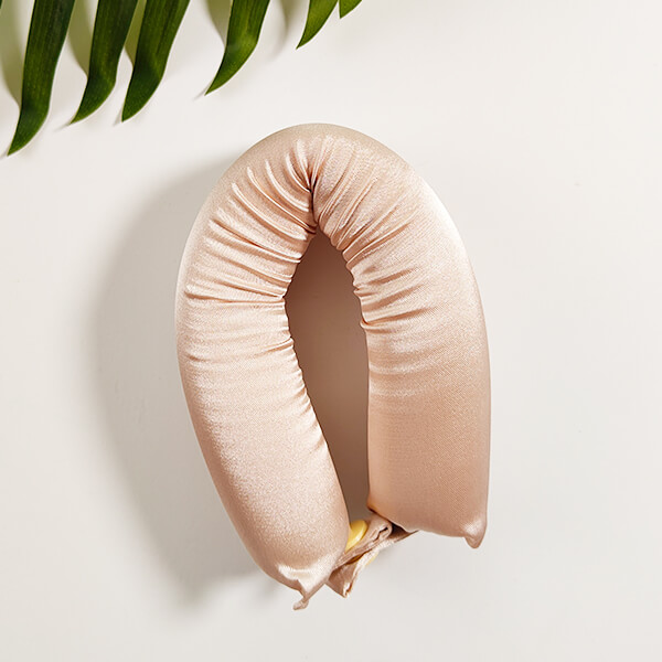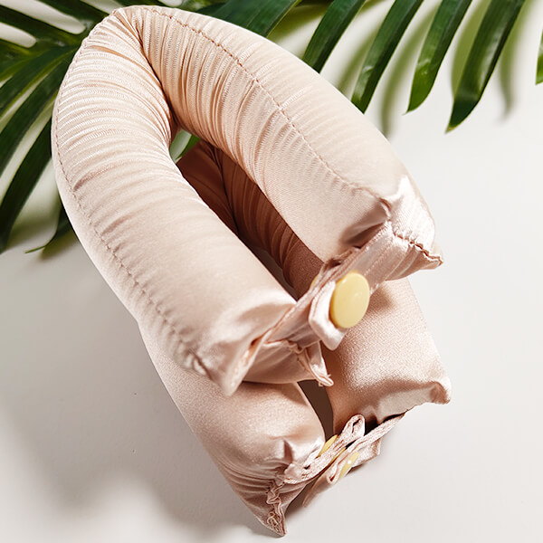 • Idealny na noc – miękka satyna nie uciska, a wałek nie zsuwa się podczas snu.
