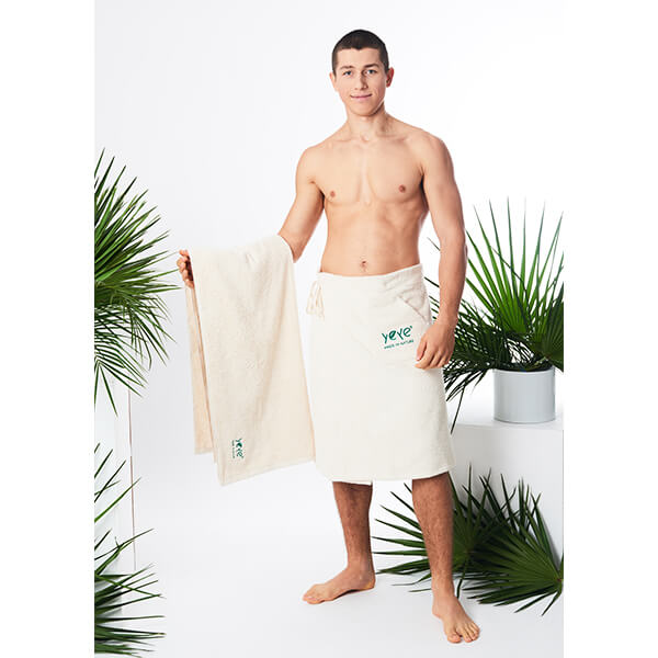 Zestaw do sauny YEYE Made in Nature to naturalna ochrona i komfort dzięki wykonaniu wyłącznie z wysokiej jakości, przyjaznych dla skóry materiałówbawełny i wełny.