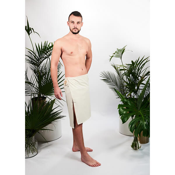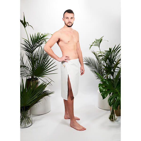 Zestaw must have dla wszystkich mężczyzn kochających wizyty w saunie! Kilt pozwoli Ci się w pełni zrelaksować podczas seansu, natomiast szlafrok to idealny dodatek, który sprawdzi się w hotelu, czy po wyjściu spod prysznica. Szlafrok dostępny w kolorze białym z szarą lamówką.